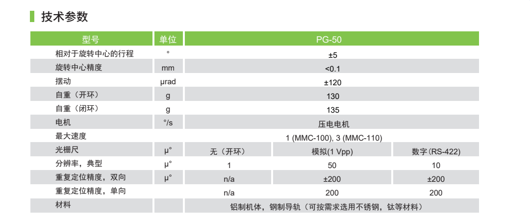 PG-50角位移平臺的緊湊設計,在有限的空間中應用表現(xiàn)良好。通過預加載的交叉滾子導軌實現(xiàn)高剛度運動。這些載物臺可以安裝在正交的、節(jié)省空間的布置中,以實現(xiàn)俯仰和翻滾調節(jié)。可提供真空(10-9mbar)中操作的版本。PG-50兼容MMC-100和MMC-110控制器。