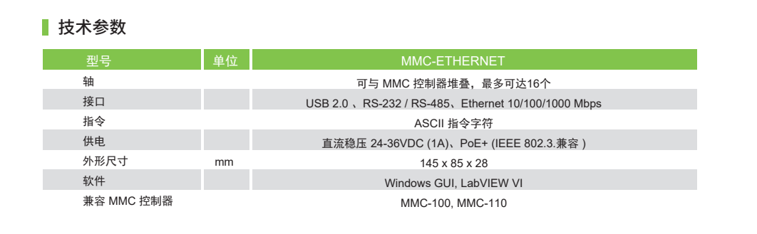 • USB 2.0,RS-232/485接口,以太網(wǎng)口(一個接口支持最多16個軸)
